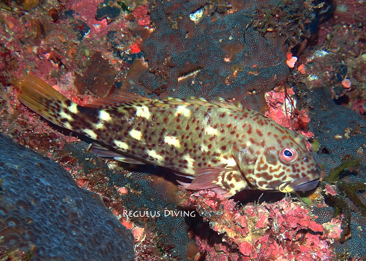 ナズマドなどの荒磯の浅場で単独で見られる魚です。地味で、カサゴの仲間と間違われやすく、これといった特徴もない上、近づくと素早く逃げてしまうので、まずダイバーの興味を引くことはありません。