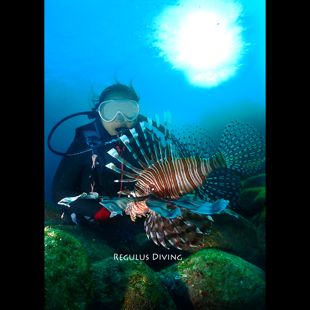 仕方なく呼んで撮ろうとしたら、今度はハナミノカサゴを私の方に寄せてくるし……。