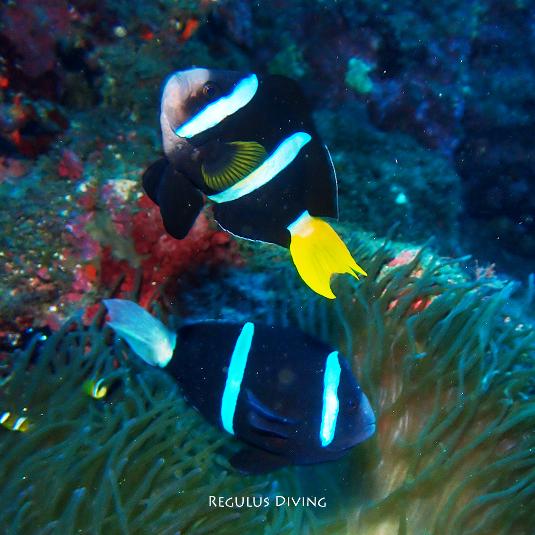 それぞれのイソギンチャクには、大きめのオスと小さめのオスが1匹ずつ住みついていました。