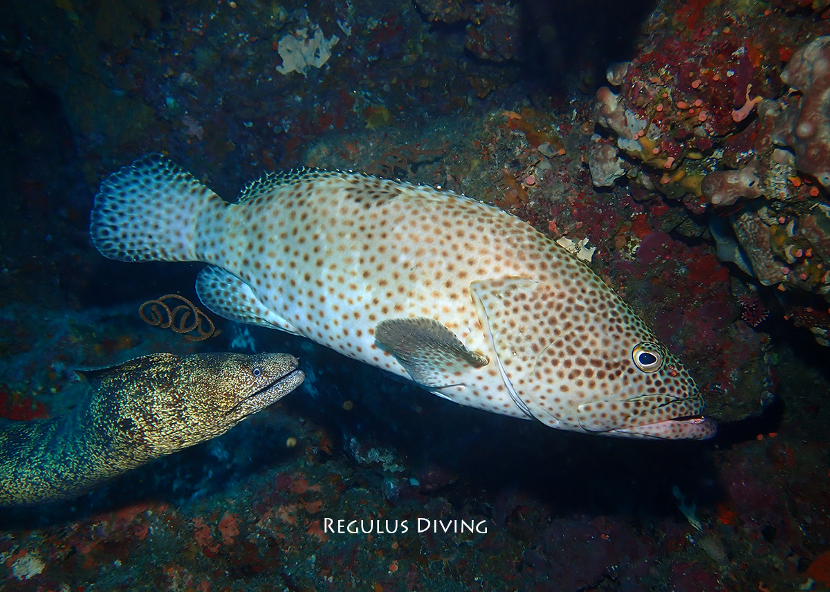 写真はヒトミハタ。ですが、その後ろには大きなウツボがぴったりと後を付けていました。いったい何がしたかったんでしょうか。