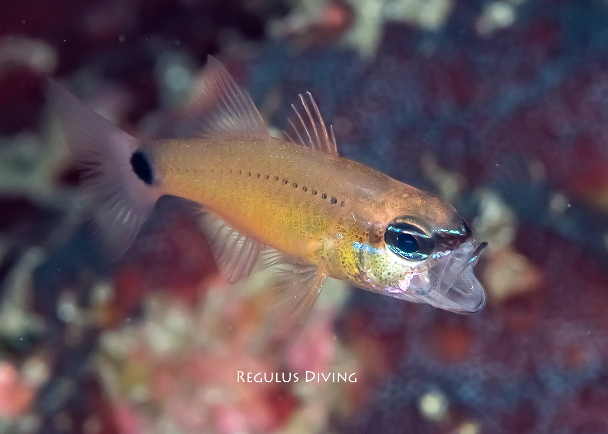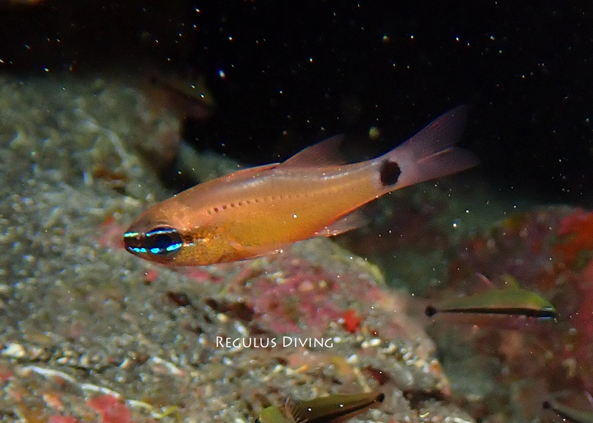さて、今日の写真は先日見つけたコンゴウテンジクダイです。しばらく空きの日がないので、いなくなってしまうと困ると思い、午後の体験ダイビングが終わったあとに行ってきました。