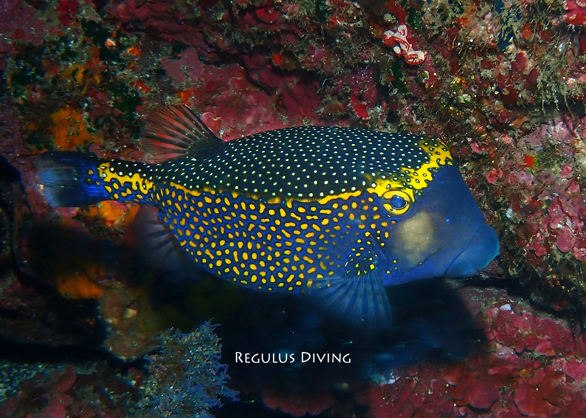 さて、今日のお魚さんはクロハコフグのオス。八丈島ではかなり珍しい部類に入ります。